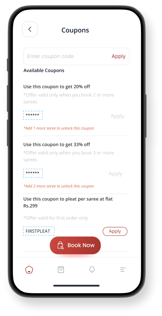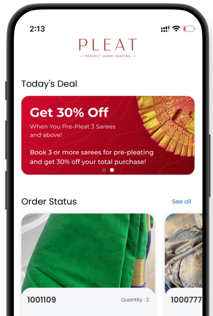 With our user-friendly app, booking your saree pleating service is as simple as a few taps on your screen.