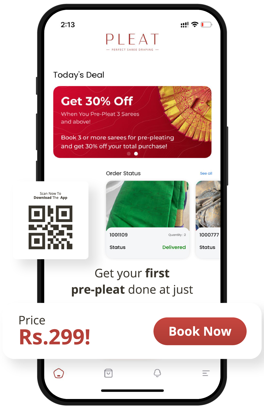 Download Pleat now for easy, 24-hour saree pre-pleating services.
